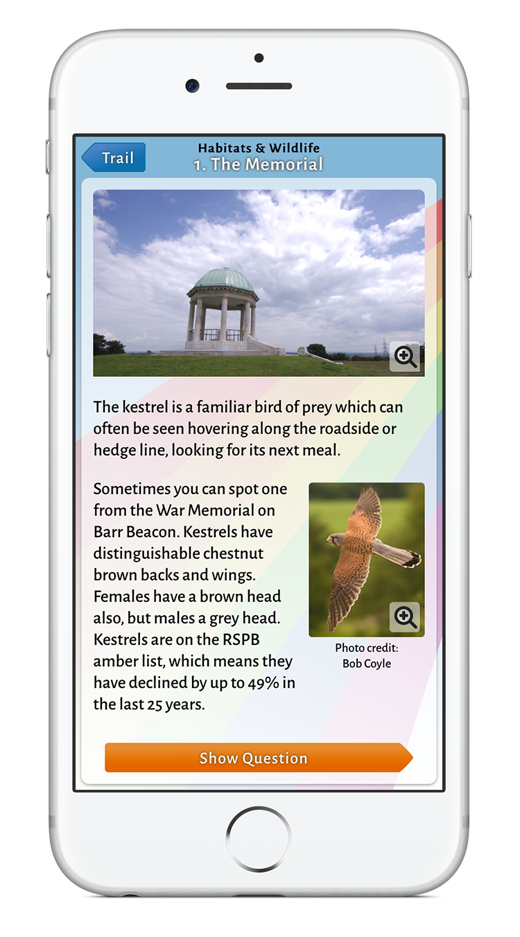 As part of a grant awarded by HLF to Walsall Council, we were commissioned to develop an app for Barr Beacon Local Nature Reserve (LNR) - one of a wider set of initiatves - to encourage the public to visit Walsall green spaces, and take up more exercise to improve general health.