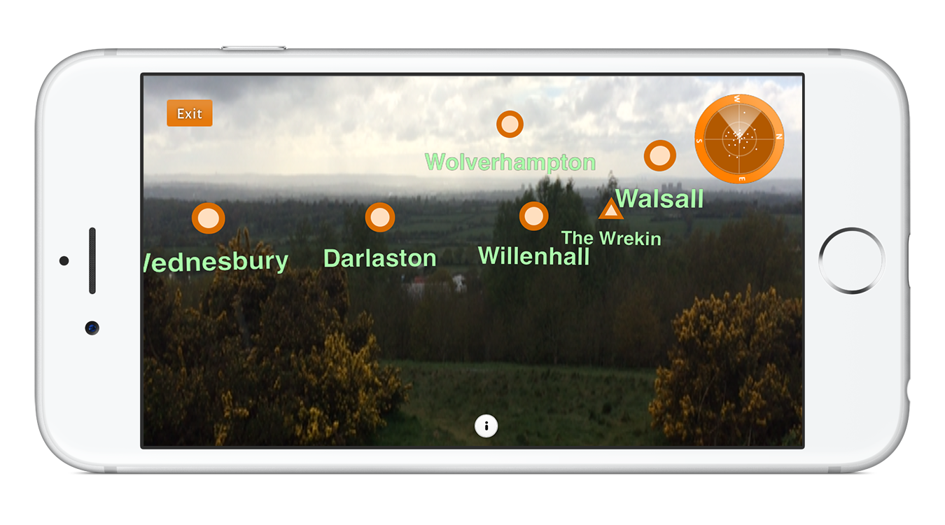 Barr Beacon is one of the highest points in the West Midlands and AR was included to help users identify towns, counties and landmarks on the horizon. We chose to use a third-party plugin called Wikitude, which for my part required me to help the client choose suitable points of interest, obtain lat/long co-ordinates and style UI components.