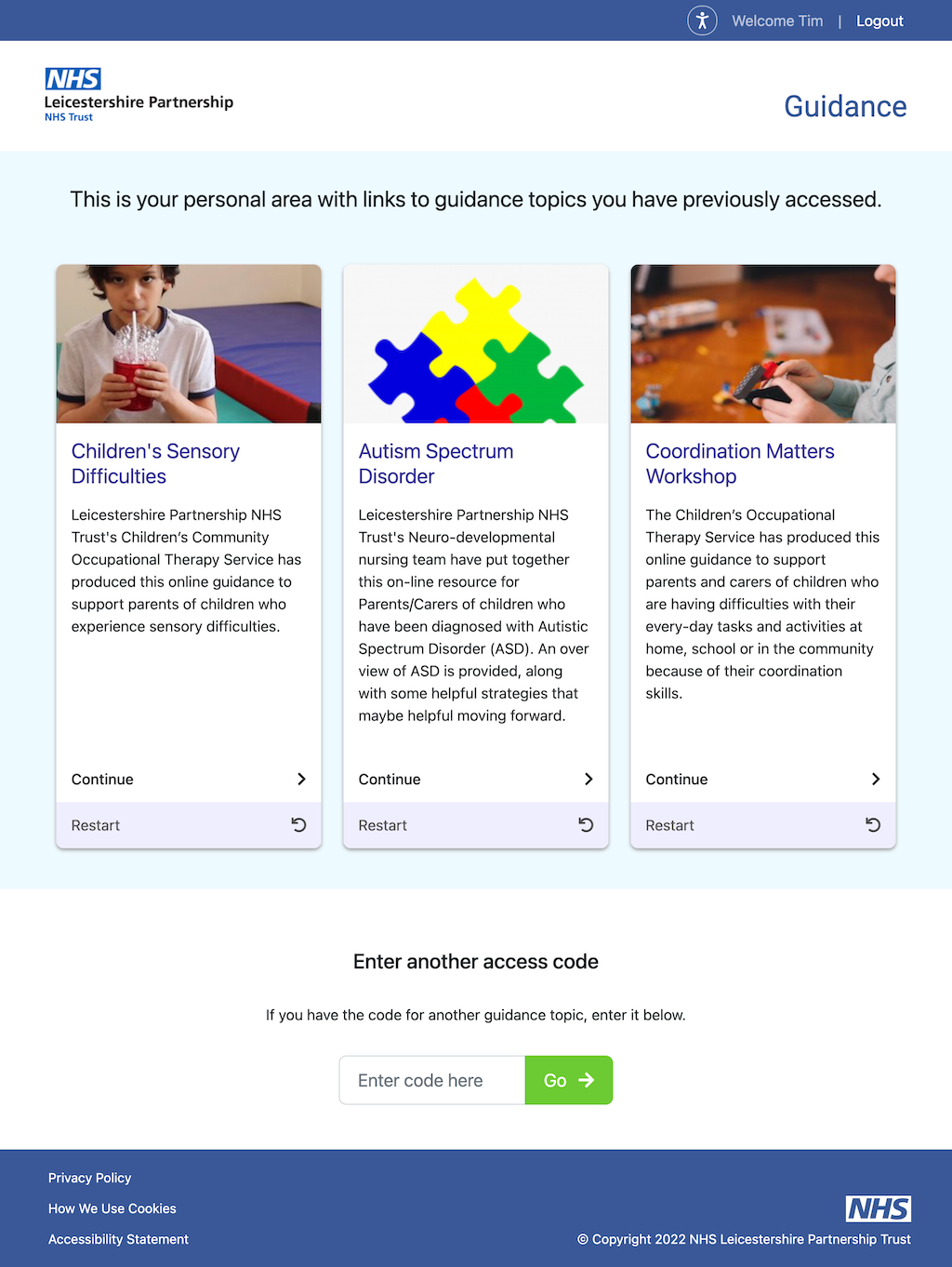 Guidance is a web-based service provided by NHS LPT offering secure online video workshops. During the Covid-19 pandemic it came into its own, where it was not possible to offer in-person appointments. I had a full stack role in its design and development.